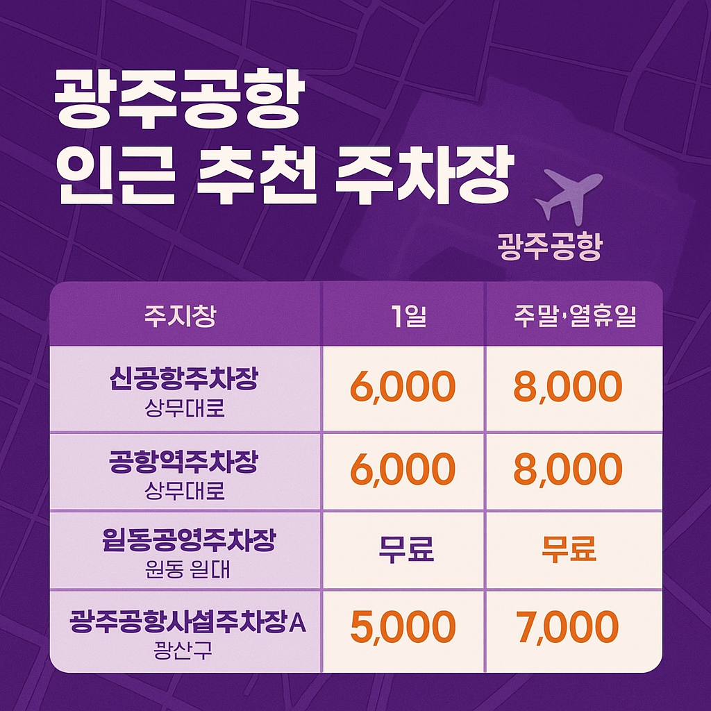 아래는 실제 이용자 기준 후기와 가격 정보를 종합한 광주공항 인근 추천 주차장 리스트입니다.