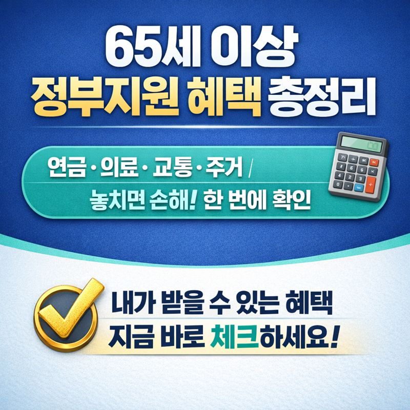 이 글에서는 65세 이상 정부지원 혜택을 연금·의료·교통·주거·생활비 영역으로 나눠 어디서 확인하고, 무엇부터 챙기면 좋은지까지 쉽게 정리했습니다.